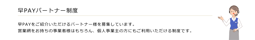 ご紹介いただいた事業者様が早PAYを導入し、ご利用いただいている間、パートナー報酬を受け取る事ができます。